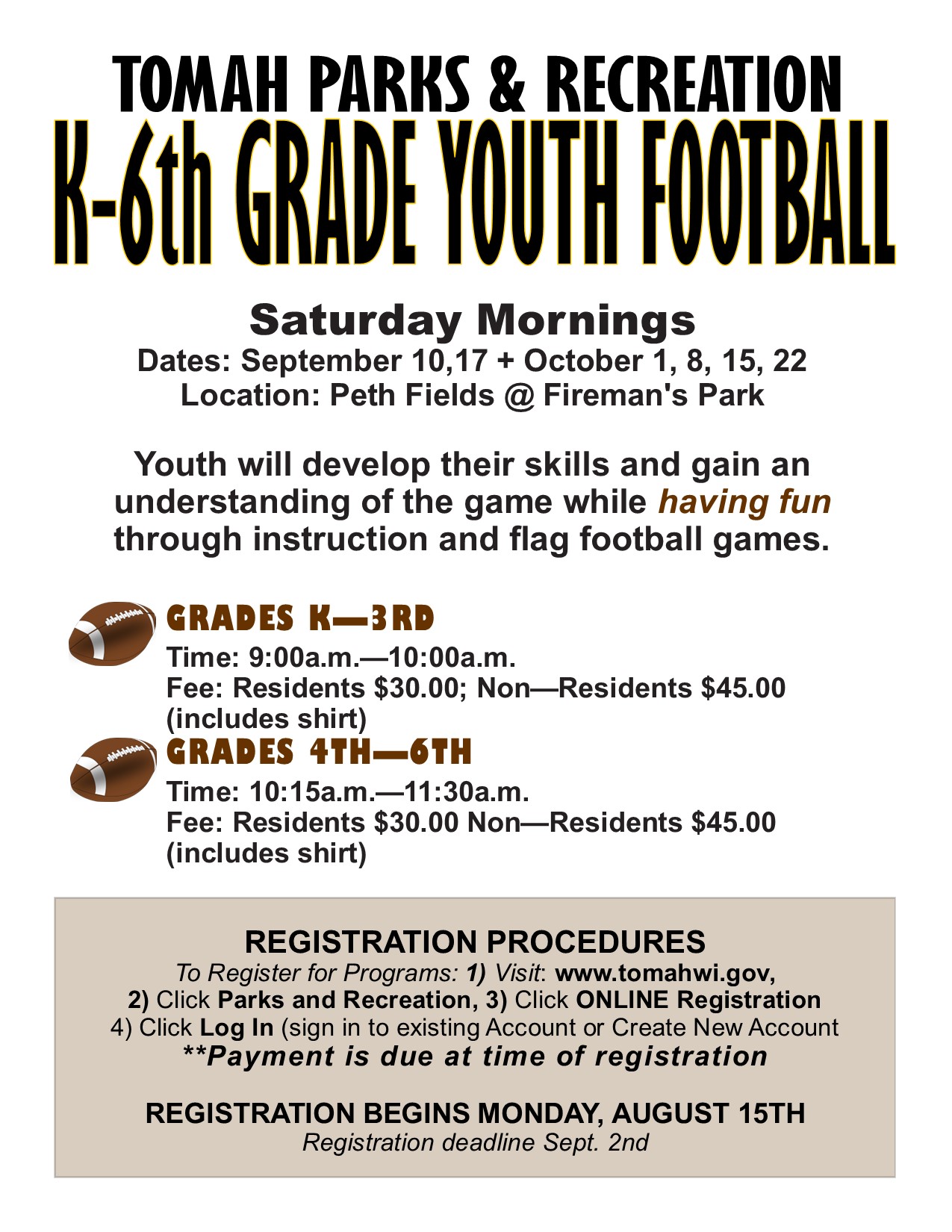 K-6th GRADE YOUTH FOOTBALL REGISTRATION